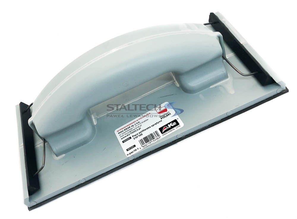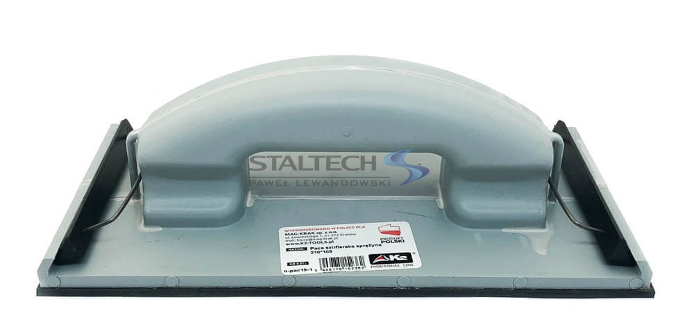 Paca szlifierska (zatrzask) o wymiarach 210 mm x 105 mm do papieru ściernego lub siatki szlifierskiej.