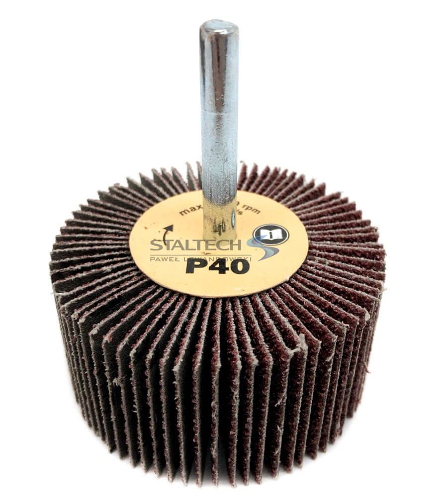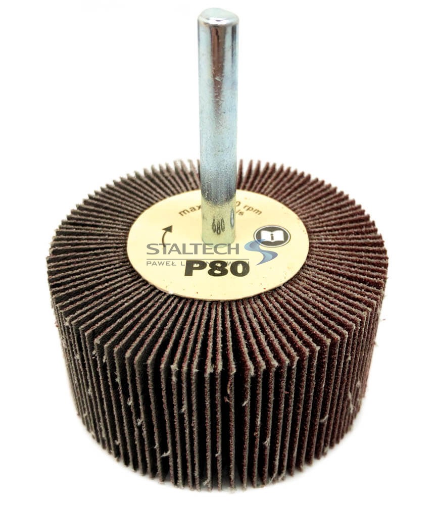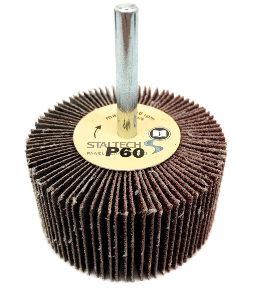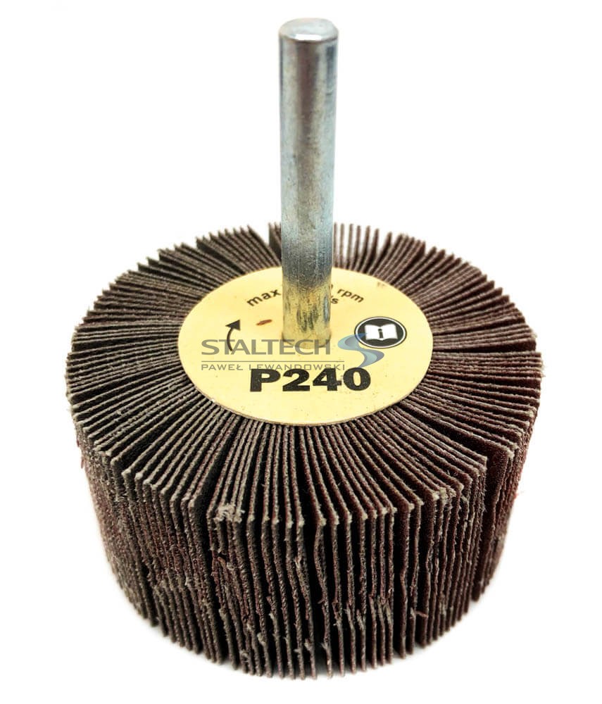 Ściernica listkowa trzpieniowa w rozmiarze 60 x 30 x 6 mm. Jest wykonana z pojedynczych listków bardzo wytrzymałego płótna ściernego, które zostały zamocowane wokół trzpienia w formie wachlarza. Dostępne gradacje: P40, P60 , P80, P120, P240.