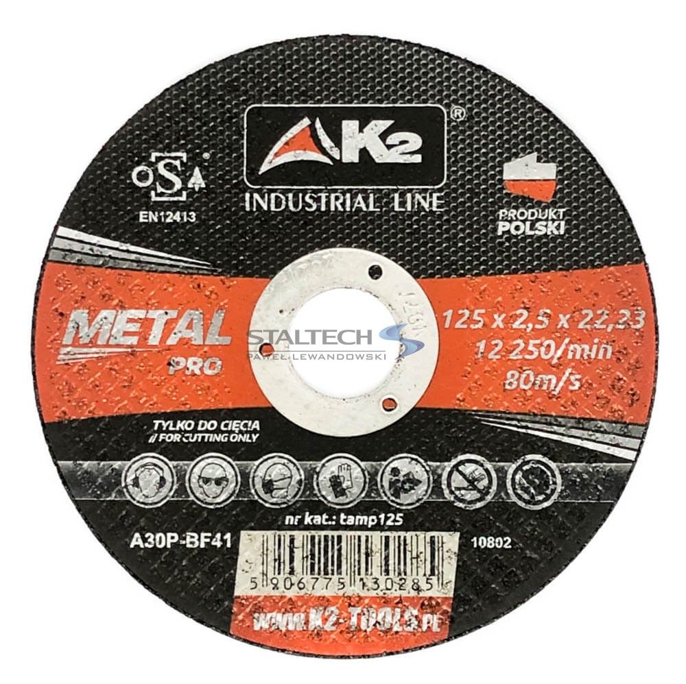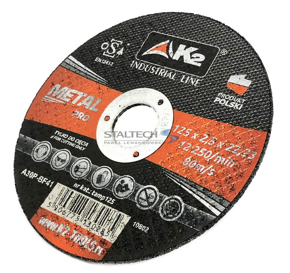 Tarcza do cięcia metalu o wymiarach 125 mm x 2,5 mm marki K2, to wysokiej jakości tarcza dedykowana do przecinania różnego rodzaju stali.