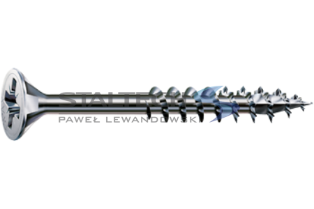 Wkręt uniwersalny SPAX w rozmiarze 5 x 100 mm, o częściowym gwincie. Posiada pięć cech szczególnych: